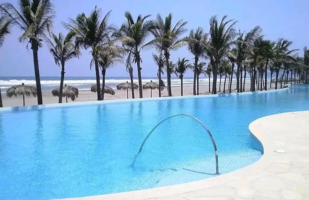 The 140 m² property lies in Acapulco Diamante, that is the site of popular beach Revolcadero, which has shallow waters and big waves, at a 3.2 km distance from Revolcadero. The private beach is located nearby.